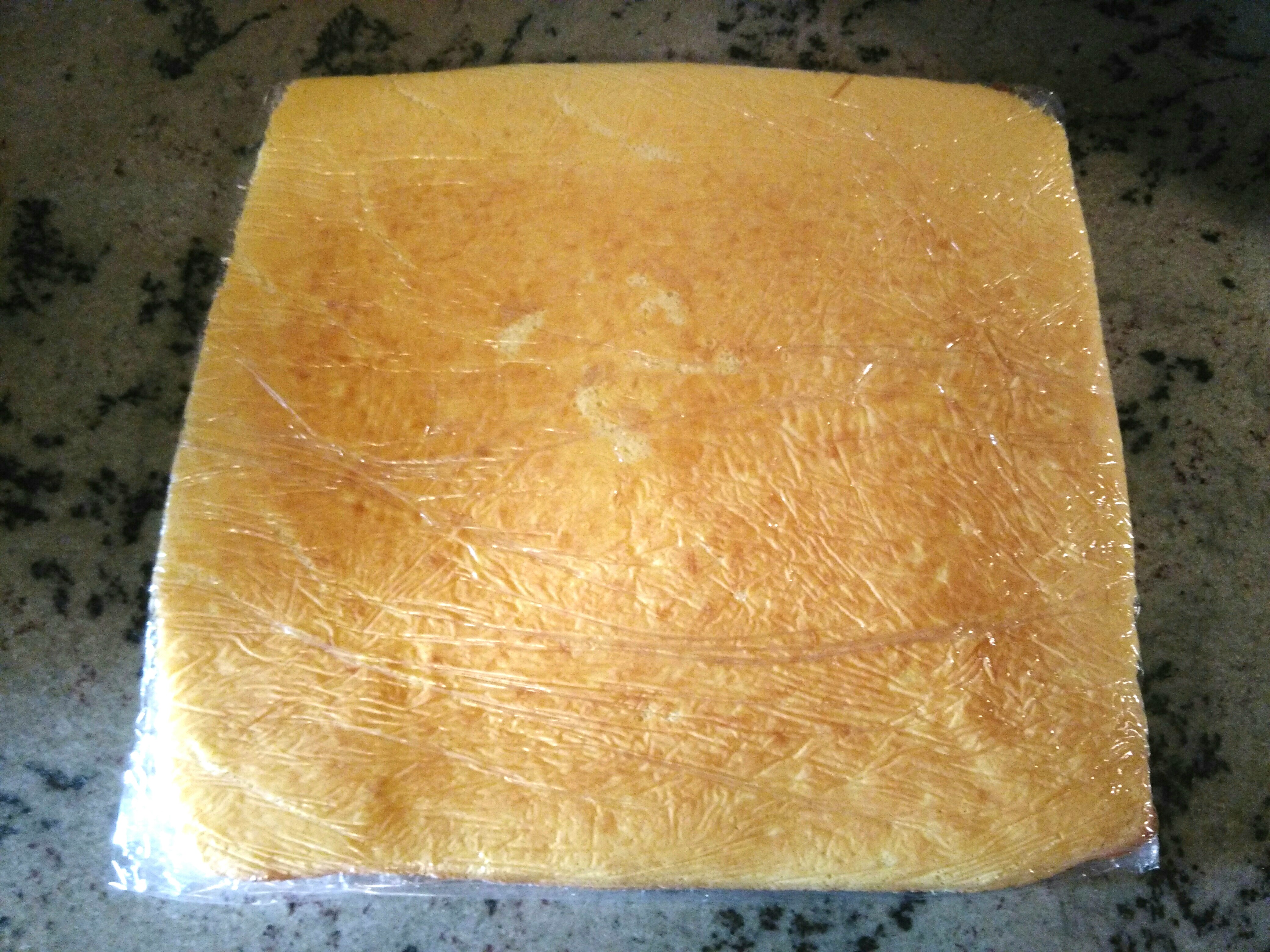 Infornate per circa 6/7 minuti finché la pasta biscotto sarà dorata, non di più! Appena scaduto il tempo estraete subito dal forno e fatela scivolare con la carta da forno su un piano da lavoro. Copritela con della pellicola e capovolgetela. Togliete la carta da forno e copritela anche da questo lato con della pellicola e sigillate i bordi come in foto: